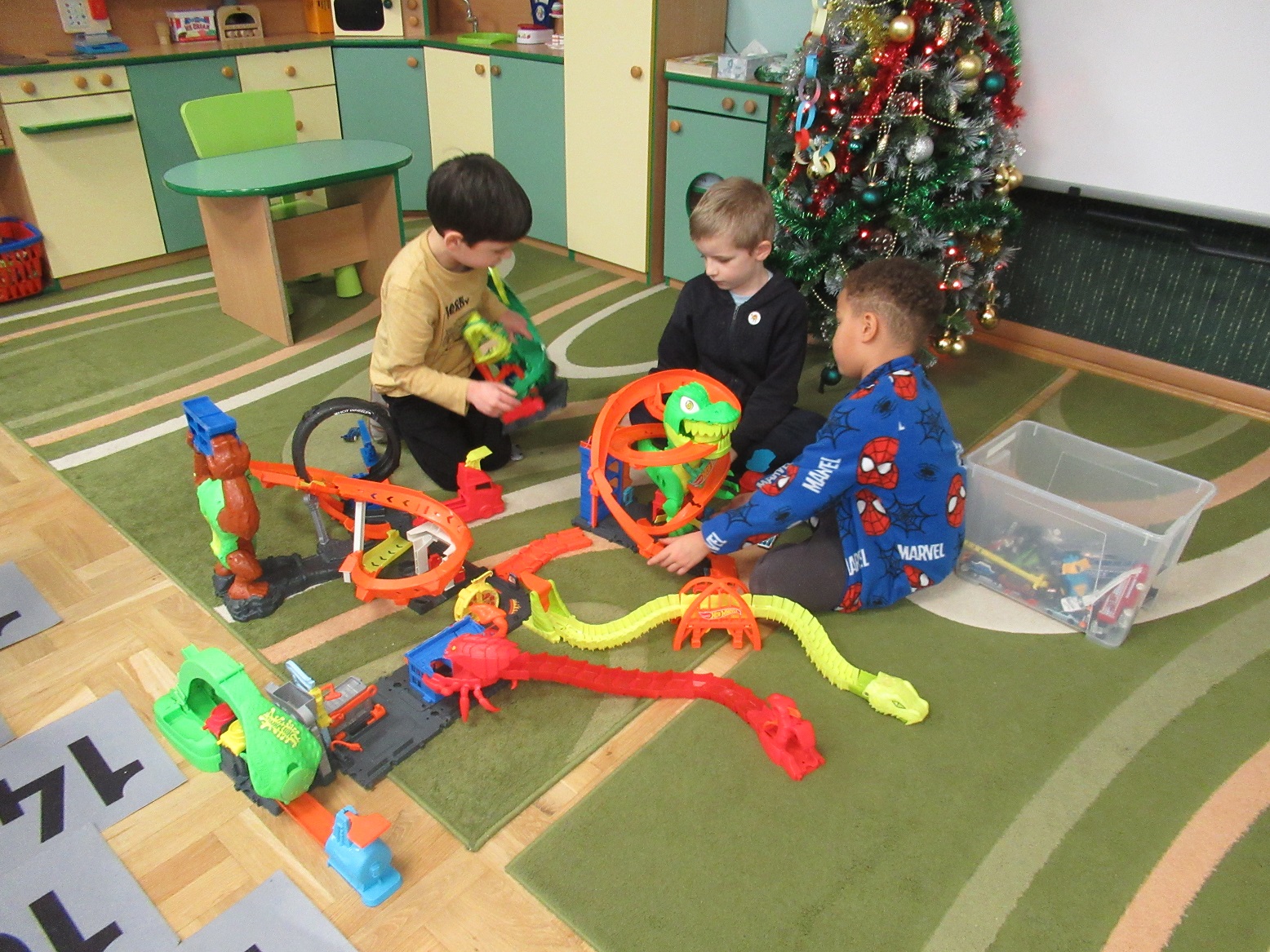 Za nami styczeń – piękny, zimowy miesiąc pełen ciekawych wydarzeń i radosnych chwil. Podczas zajęć rozmawialiśmy o zimie, rodzinie oraz karnawale. Jak zawsze uczyliśmy się nowych rzeczy i miło spędzaliśmy czas, śpiewając, tańcząc, licząc, rysując, poznając litery i cyfry, słuchając pięknych opowiadań i bajek, malując oraz bawiąc się zabawkami.
