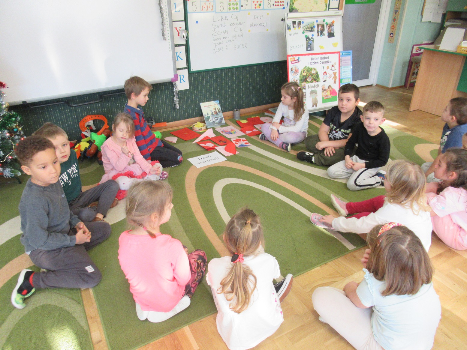 Braliśmy udział w Międzynarodowym Projekcie Edukacyjnym „Jestem OK!”, w ramach którego obchodziliśmy Dzień Akceptacji. Dzieci wysłuchały opowiadania „Jesteś jednym z nas” i rozmawiały o tym, że wszyscy się od siebie różnimy – i że to jest ok. Każde dziecko wylosowało imię koleżanki lub kolegi z grupy i wykonało dla tej osoby laurkę z miłym rysunkiem i ciepłymi słowami.