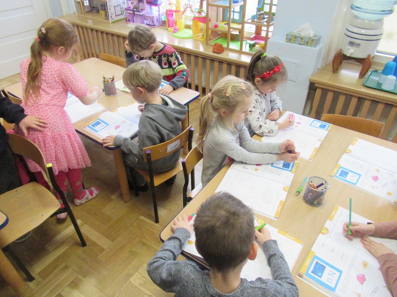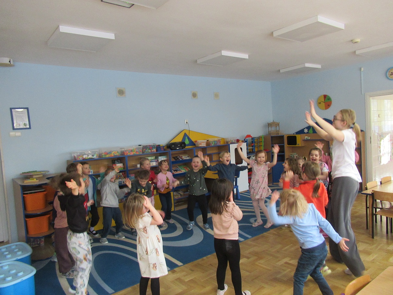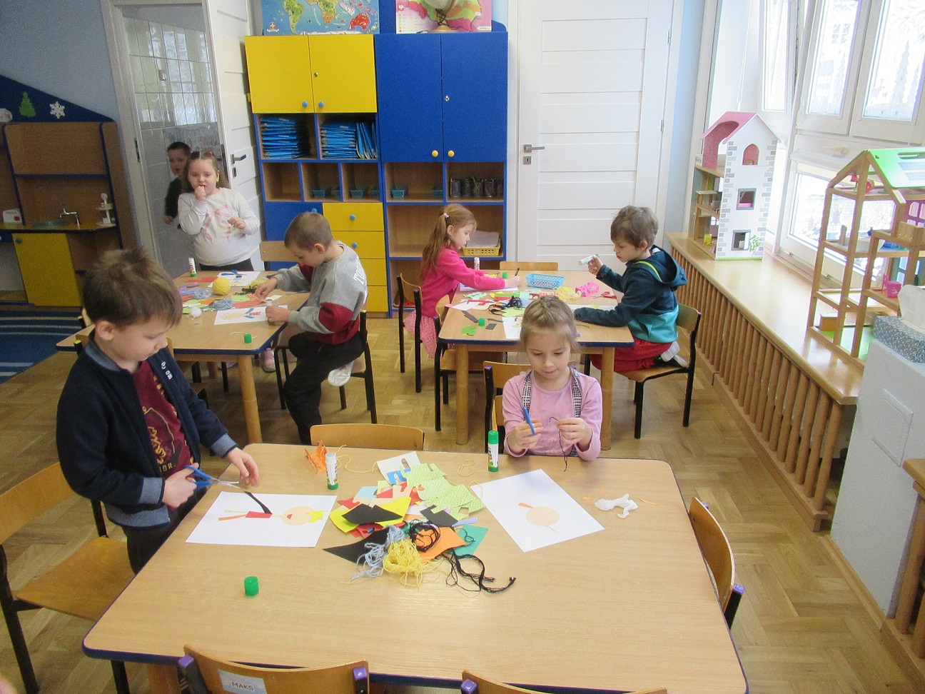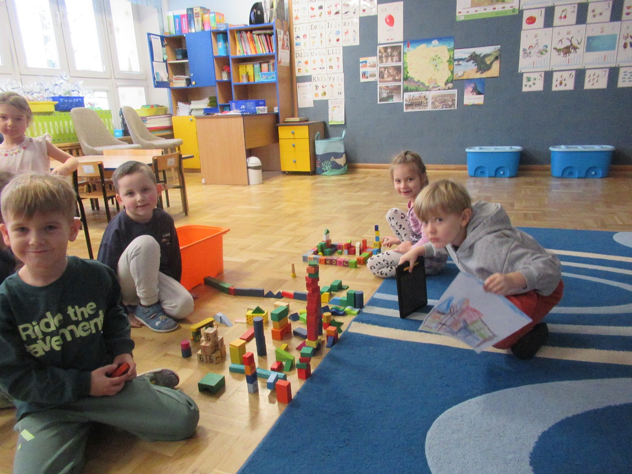 Przede wszystkim, w ramach realizacji tematów planu rocznego: „ Matematyka w czterech porach roku” kształtowaliśmy umiejętności liczenia w zakresie dziesięciu. Natomiast podróżując z Pluszowym Misiem po Polsce udaliśmy się do województwa małopolskiego. Pierwszym przystankiem był dla nas Kraków. Zapoznaliśmy się z zabytkami tego miasta. Powędrowaliśmy na Starówkę, gdzie przywitało nas wiele gołębi. Poznaliśmy również legendę o Smoku Wawelskim.
