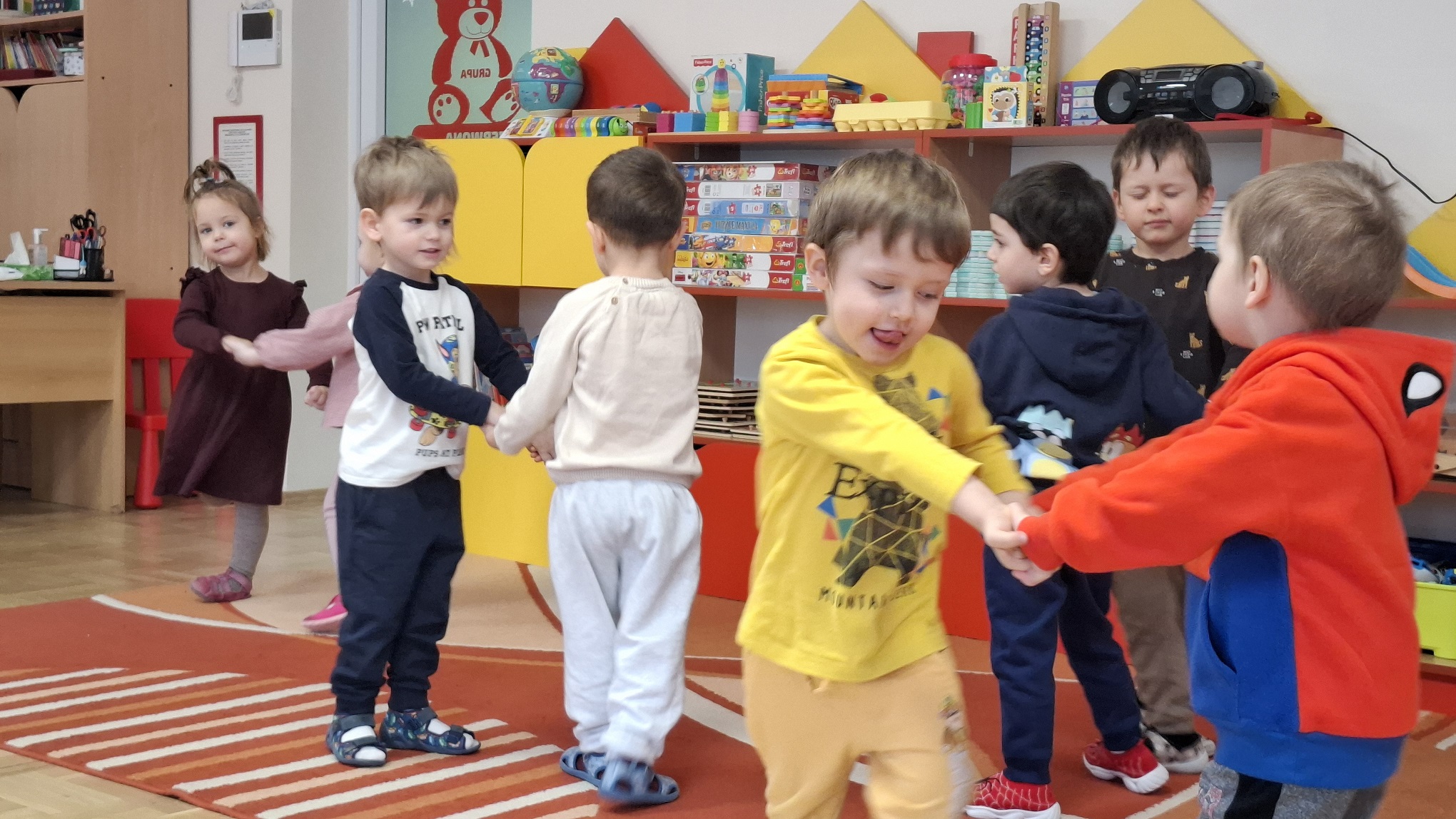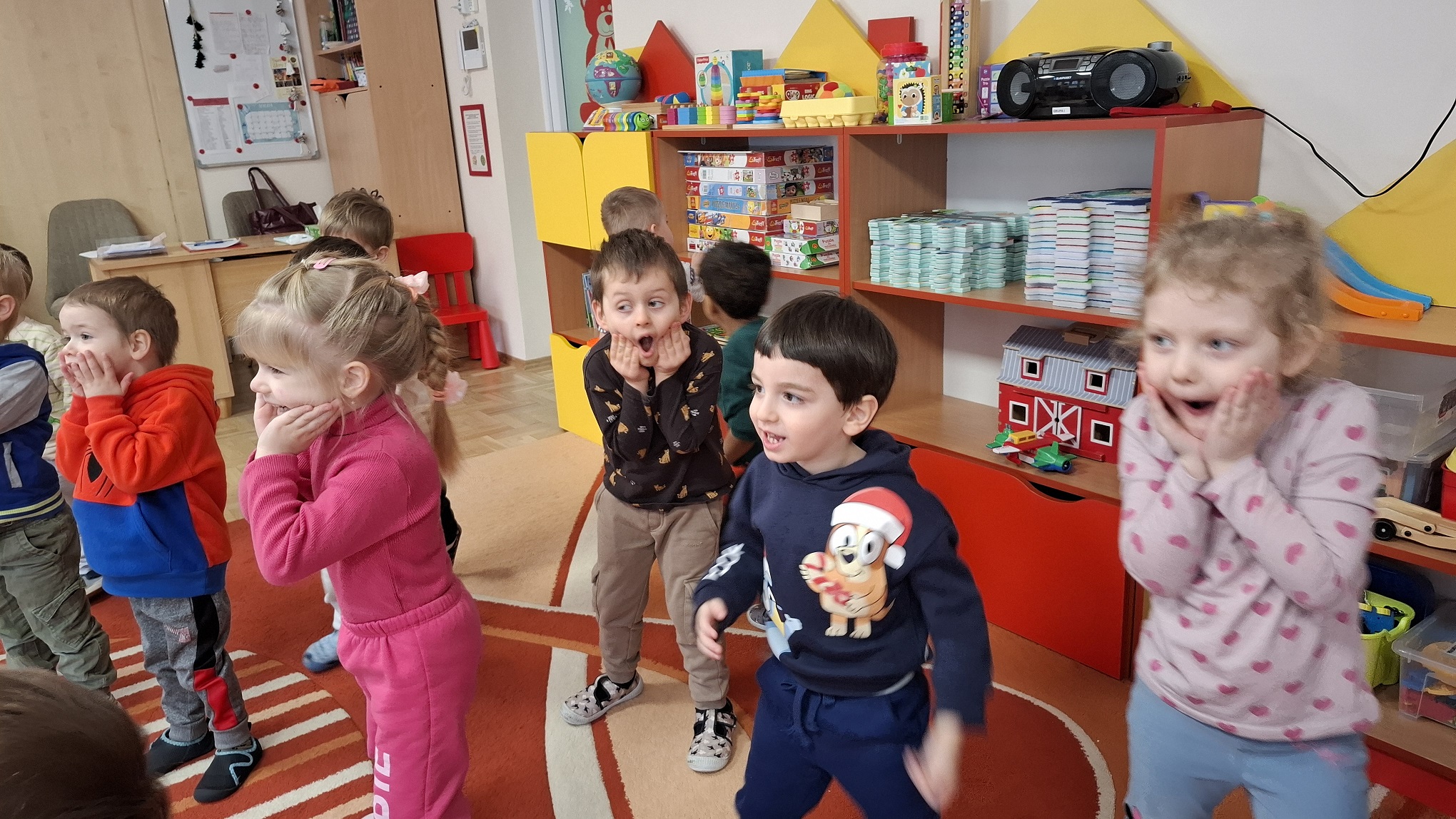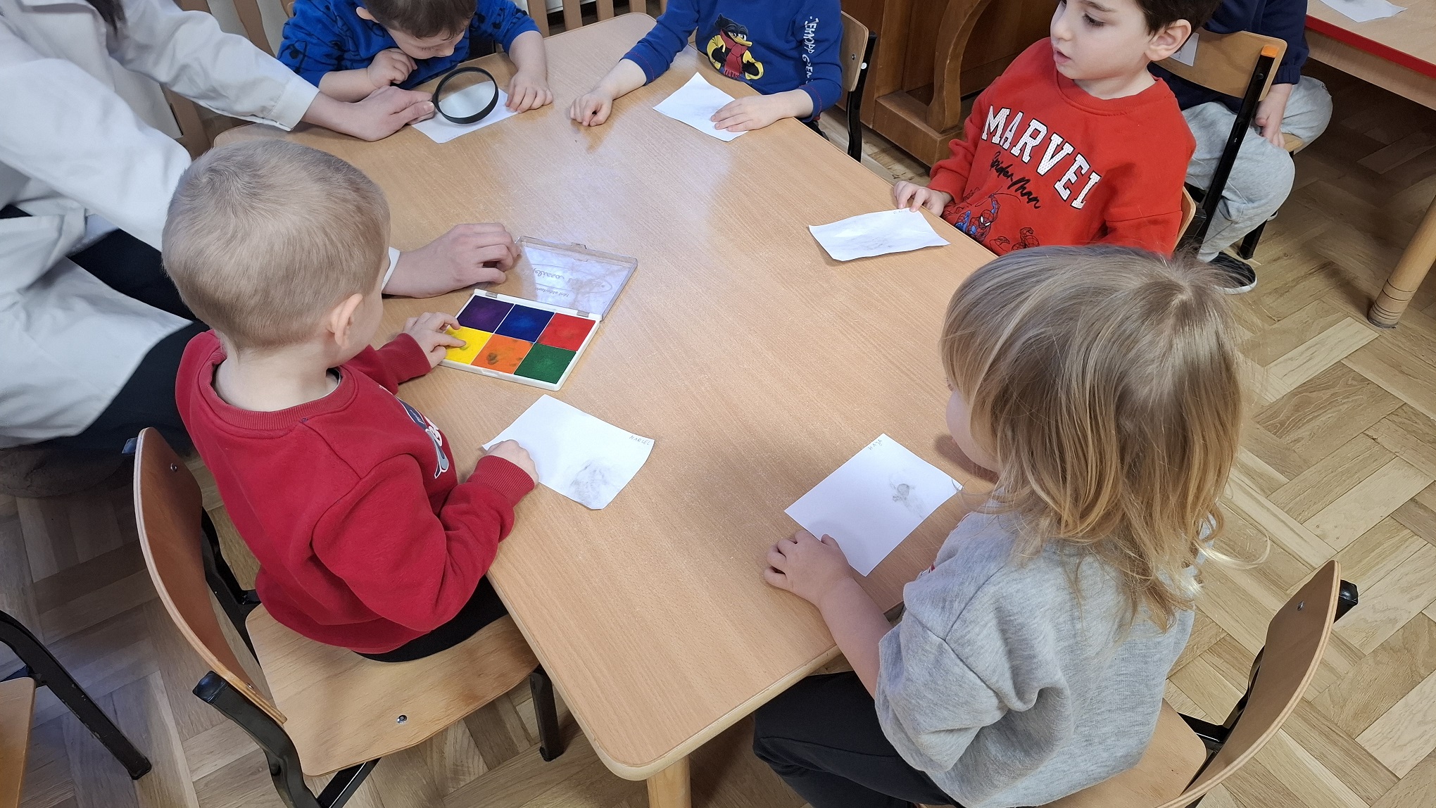 Styczeń w naszej grupie upłynął pod znakiem ruchu, odkrywania i zimowych zabaw. Dzieci z radością uczestniczyły w różnorodnych aktywnościach, które wspierały ich wszechstronny rozwój. Podczas zajęć Roar Dance przedszkolaki rozwijały sprawność ruchową, koordynację oraz poczucie rytmu. Zajęcia taneczno-ruchowe dostarczyły dzieciom dużo radości i były doskonałą okazją do wyrażania emocji poprzez ruch. W ramach zajęć Labo Odkrywcy dzieci po raz pierwszy zetknęły się z pojęciem daktyloskopii. Poprzez proste doświadczenia i zabawy z własnymi odciskami palców poznawały, że każdy człowiek jest wyjątkowy. Zajęcia wzbudziły ciekawość poznawczą i zachęcały do obserwowania oraz zadawania pytań. Nie zabrakło również zabaw na śniegu, które były świetną okazją do aktywności na świeżym powietrzu. Dzieci lepiły śnieżne kule, spacerowały po zimowym otoczeniu i cieszyły się zimową aurą, jednocześnie wzmacniając odporność oraz sprawność fizyczną. Styczeń był miesiącem pełnym uśmiechu, ruchu i nowych doświadczeń, które wspierały rozwój dzieci.