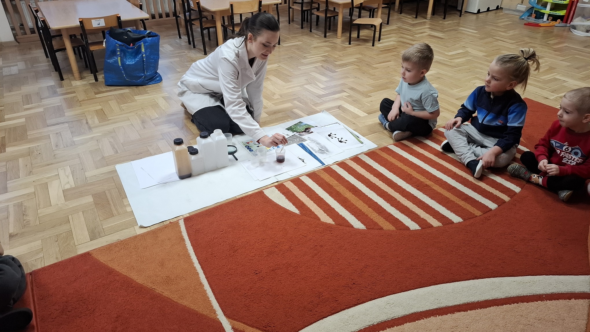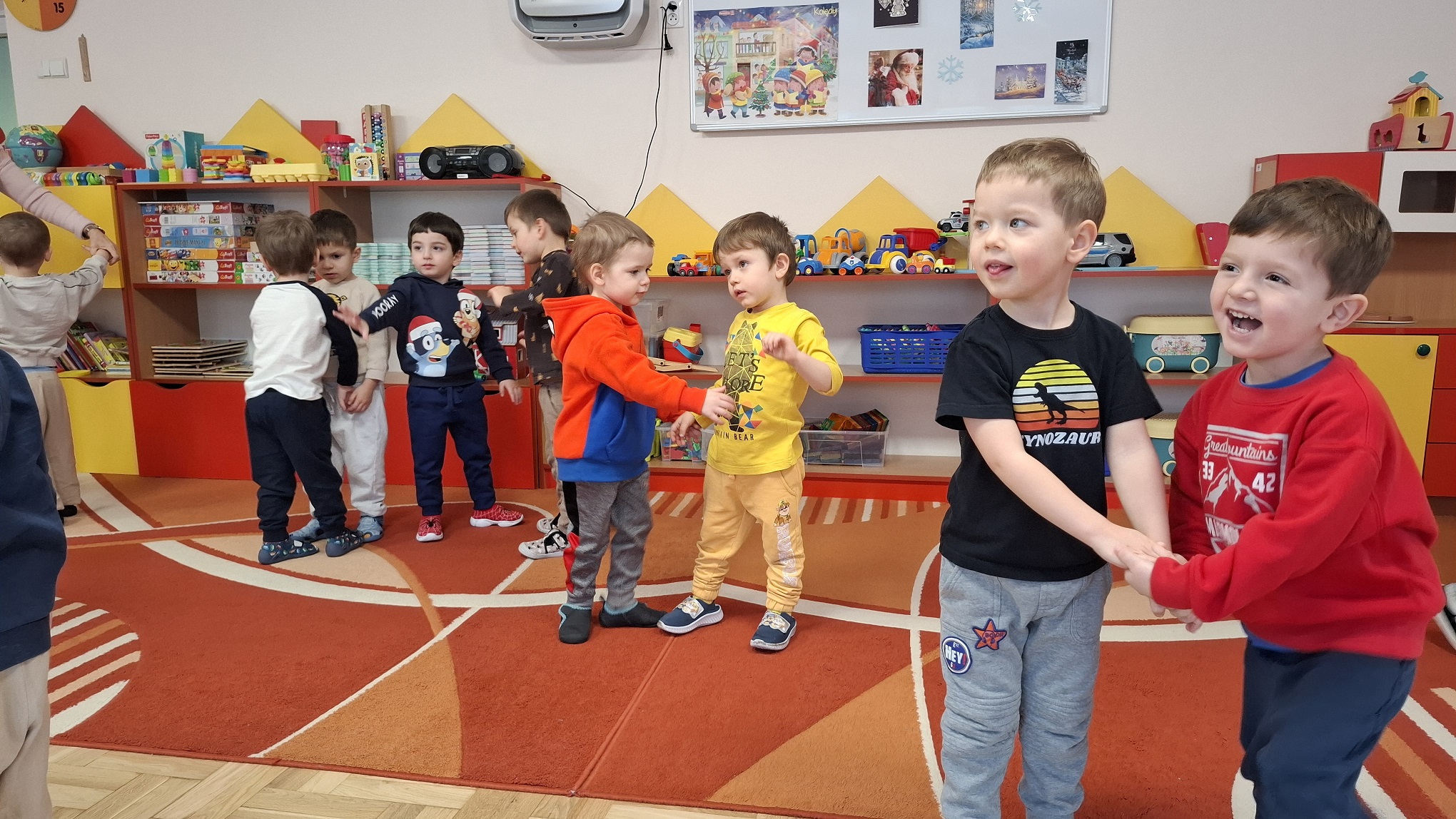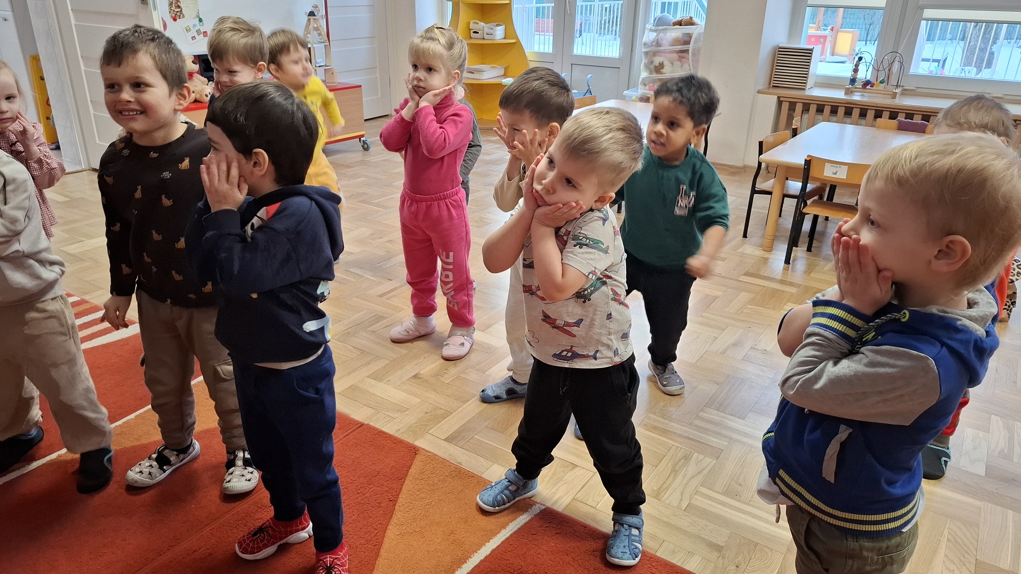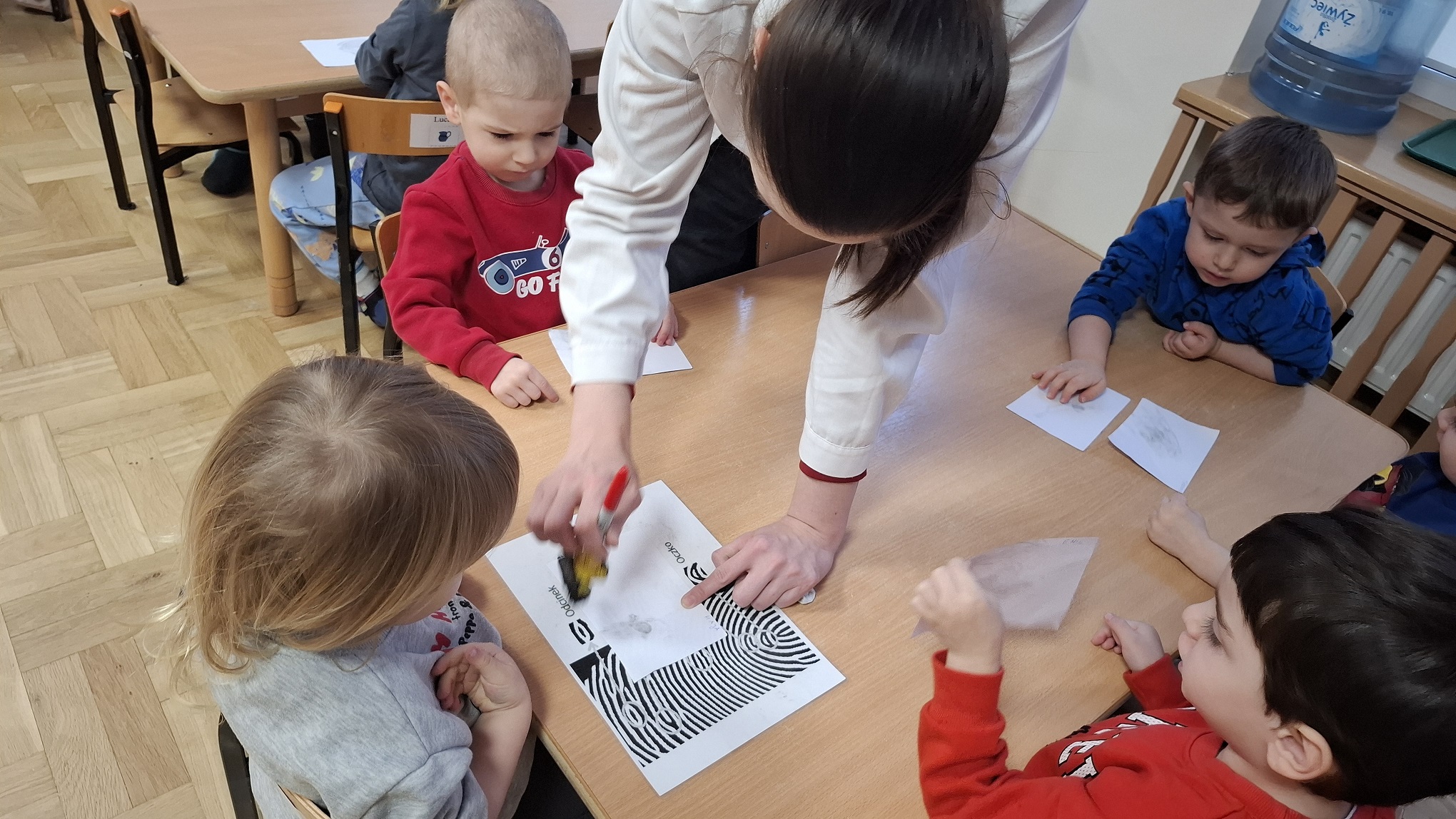 Styczeń w naszej grupie upłynął pod znakiem ruchu, odkrywania i zimowych zabaw. Dzieci z radością uczestniczyły w różnorodnych aktywnościach, które wspierały ich wszechstronny rozwój. Podczas zajęć Roar Dance przedszkolaki rozwijały sprawność ruchową, koordynację oraz poczucie rytmu. Zajęcia taneczno-ruchowe dostarczyły dzieciom dużo radości i były doskonałą okazją do wyrażania emocji poprzez ruch. W ramach zajęć Labo Odkrywcy dzieci po raz pierwszy zetknęły się z pojęciem daktyloskopii. Poprzez proste doświadczenia i zabawy z własnymi odciskami palców poznawały, że każdy człowiek jest wyjątkowy. Zajęcia wzbudziły ciekawość poznawczą i zachęcały do obserwowania oraz zadawania pytań. Nie zabrakło również zabaw na śniegu, które były świetną okazją do aktywności na świeżym powietrzu. Dzieci lepiły śnieżne kule, spacerowały po zimowym otoczeniu i cieszyły się zimową aurą, jednocześnie wzmacniając odporność oraz sprawność fizyczną. Styczeń był miesiącem pełnym uśmiechu, ruchu i nowych doświadczeń, które wspierały rozwój dzieci.