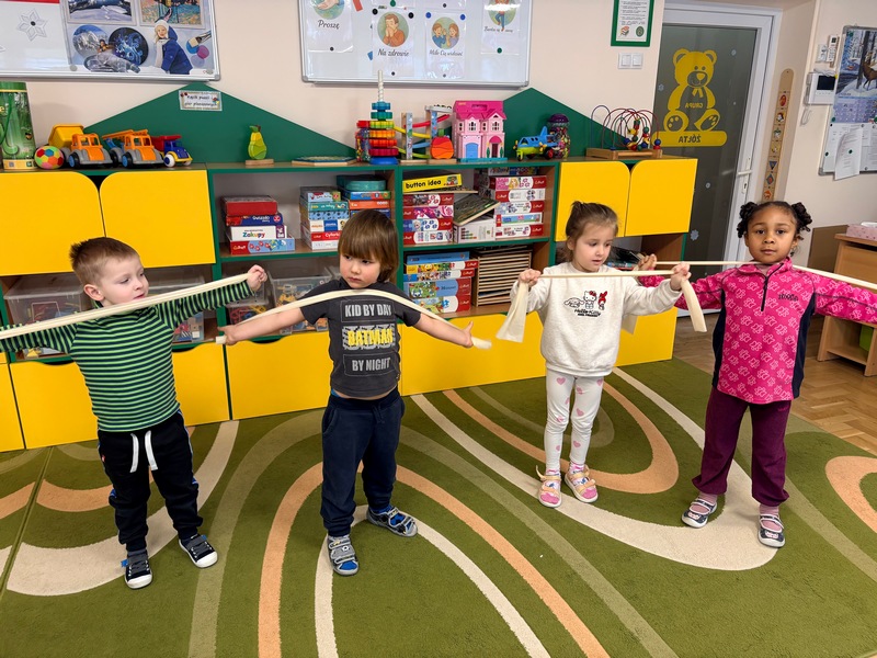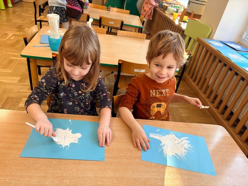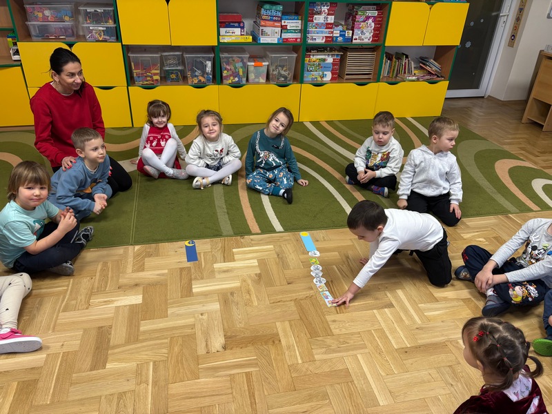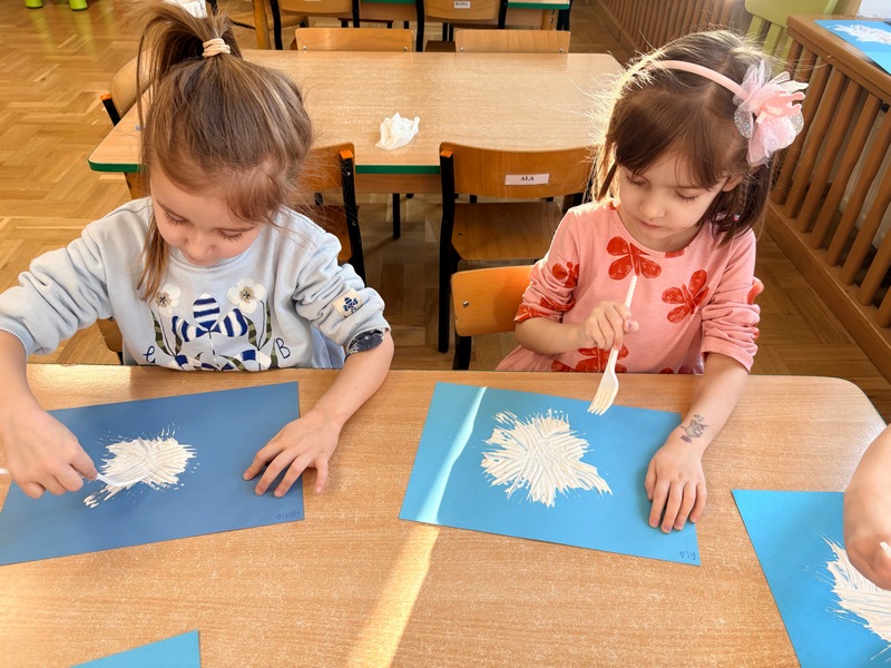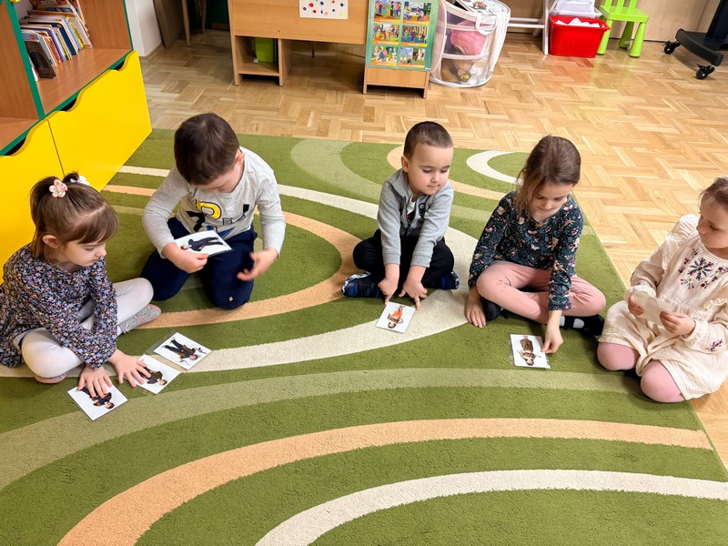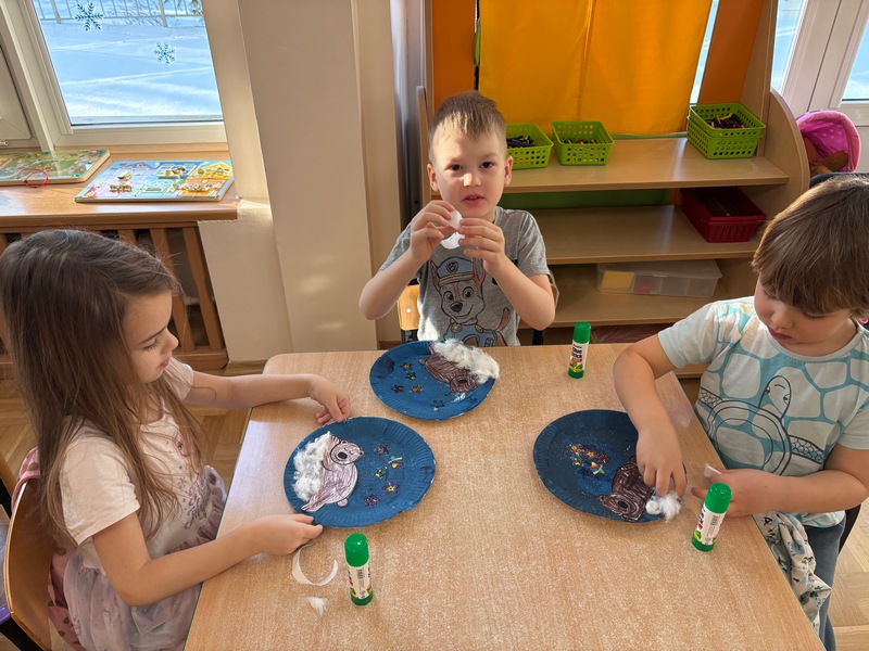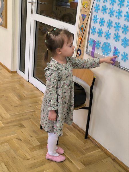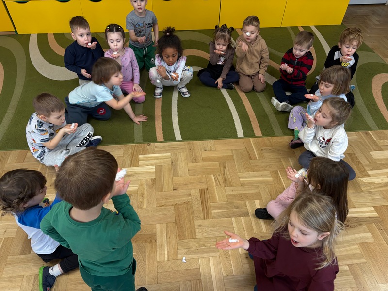 Styczeń rozpoczęliśmy od rozmów na temat przemijającego czasu. Dowiedzieliśmy się, że rok składa się z dwunastu miesięcy, a tydzień z siedmiu dni. Zrozumieliśmy, że dobę można podzielić na dzień i noc. Próbowaliśmy zapamiętać nazwy dni tygodnia oraz miesięcy – oczywiście w odpowiedniej kolejności i jak się okazało…niestety musimy jeszcze poćwiczyć.