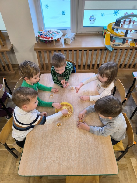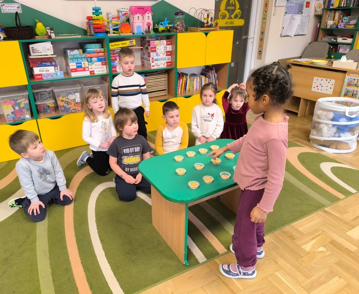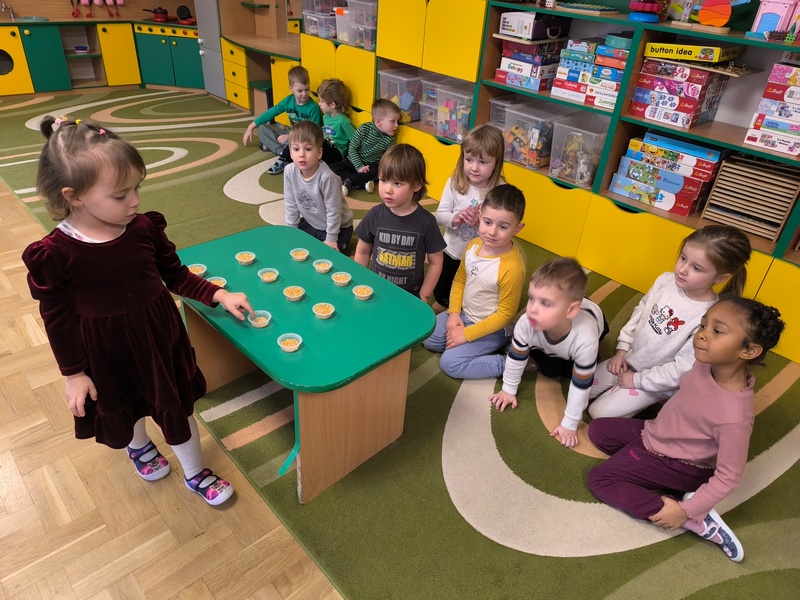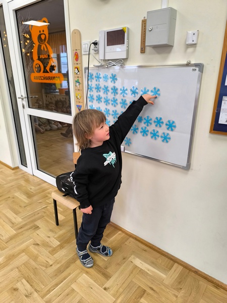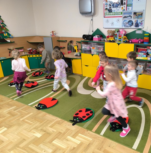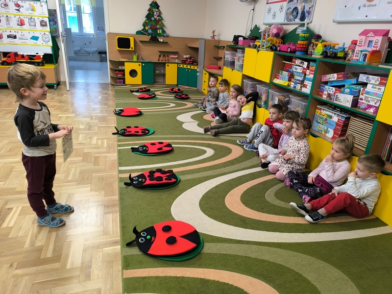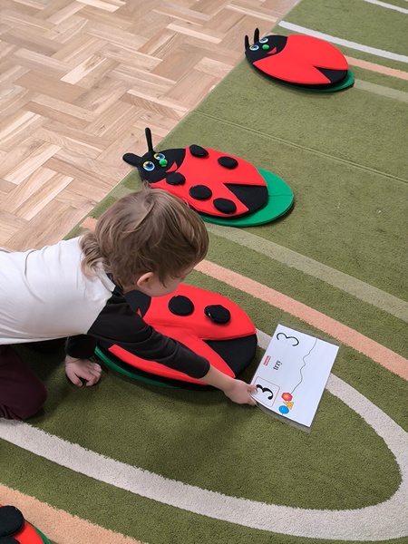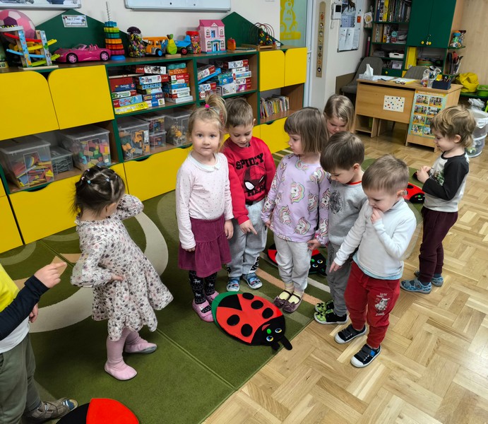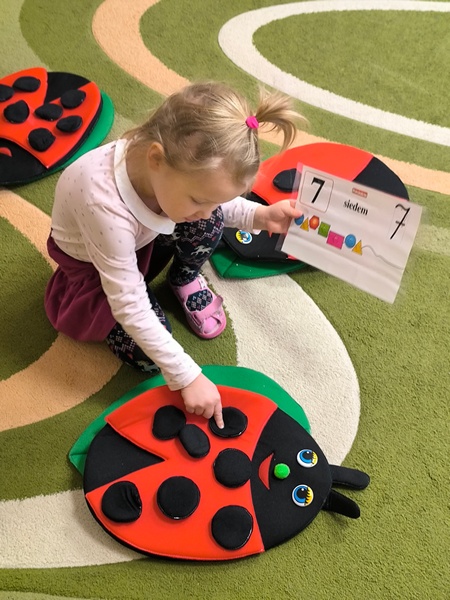- „Matematyka w czterech porach roku” – doskonaliliśmy umiejętność liczenia. Przeliczaliśmy dosłownie wszystko – klocki, samochody, a nawet kropki na biedronkach – oczywiście sztucznych J. Jak to zwykle bywa – trening czyni mistrza – my również liczymy coraz lepiej.