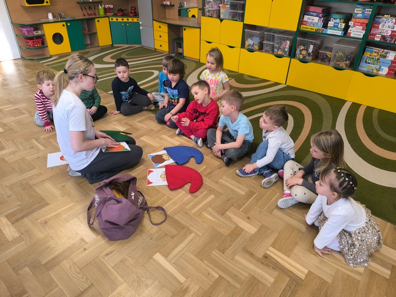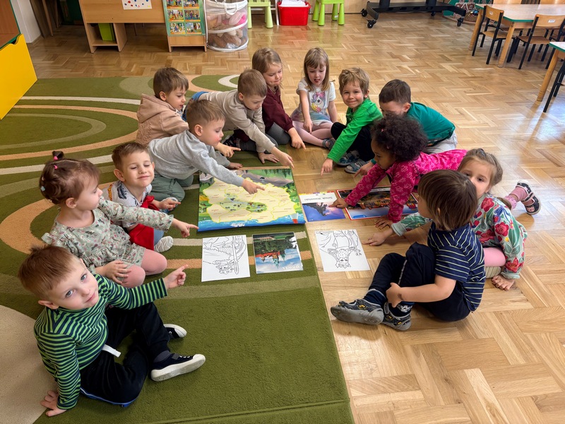 - „Podróż z Pluszowym Misiem po Polsce” – poznaliśmy województwo małopolskie. Odbyliśmy wycieczkę do Krakowa…oczywiście palcem po mapie, ale to zawsze coś. Poznaliśmy legendy związane z Krakowem m.in. o Smoku Wawelskim i zaczarowanych gołębiach. Omówiliśmy genezę tradycji grania hejnału z wieży mariackiej. Oglądaliśmy zdjęcia Zamku Królewskiego na Wawelu oraz dowiedzieliśmy się, czym są Sukiennice i co znajduje się pod nimi. Zostały „przedstawione” nam dwie ważne osobistości – pierwszy król Polski Bolesław Chrobry oraz ten, który – jak mówi stare porzekadło – „Zastał Polskę drewnianą, a zostawił murowaną” – król modernizator Kazimierz Wielki.