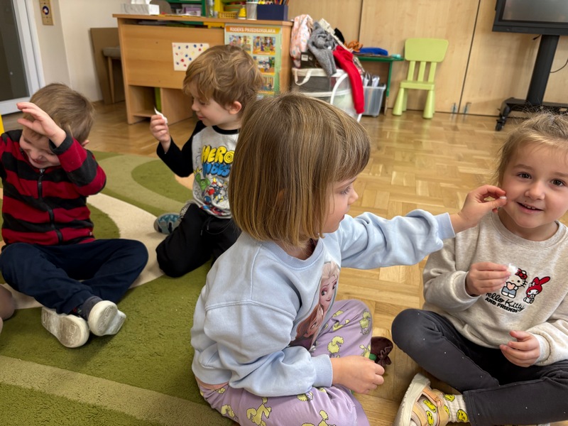 W ostatnim tygodniu rozmawialiśmy o karnawale. Dowiedzieliśmy się, czym on jest oraz w jaki sposób się go spędza w różnych zakątkach świata. Z racji tego, że jest to czas zabaw i my dużo się bawiliśmy! Sporo tańczyliśmy, a także organizowaliśmy sobie konkursy. Wykonaliśmy kilka prac plastycznych, do których zużyliśmy kilogramy brokatu…wszystko w naszej sali błyszczało, włącznie z nami! Teraz czekamy na przedszkolny bal karnawałowy…przebrania wiszą już gotowe w naszych szafach!