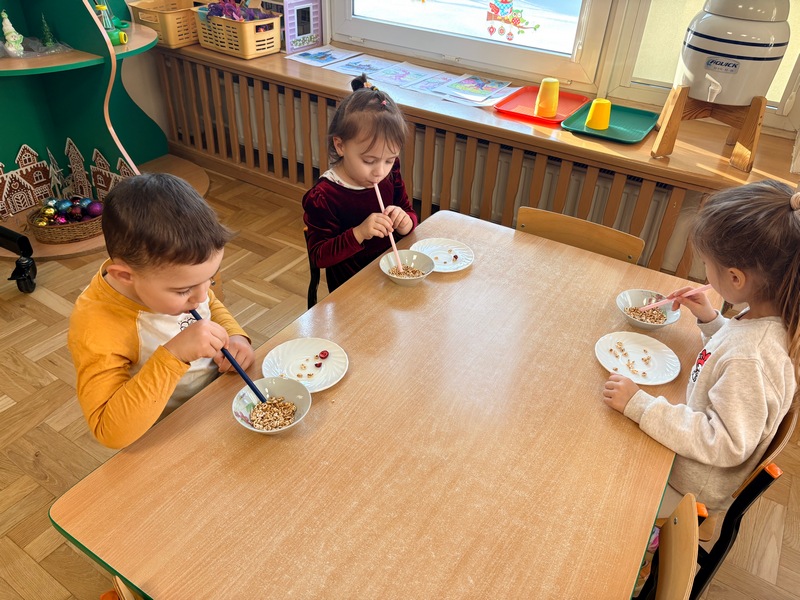 Oczywiście nadal utrwalaliśmy nasze „Wielkie maniery małych ludzi”, a Miś Dobrych Manier odwiedził kolejne domy… nawet trochę podróżował – był Bukowinie Tatrzańskiej i uczył się jeździć na nartach!