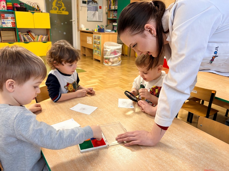 - braliśmy udział w warsztatach LABO ODKRYWCY, podczas których poznaliśmy tajniki techniki śledczej – daktyloskopii. Z wielkim zaciekawieniem zostawiliśmy nasze odciski palców, a kiedy emocje opadły dotarło do nas, że…uuups…teraz przed naszymi paniami już nic się nie ukryje!